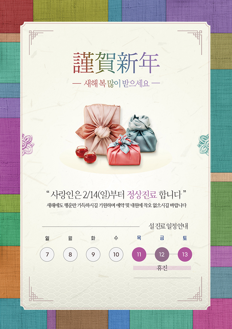 다가오는 설 연휴를 맞이하여 진료 및 일정을 안내드립니다.