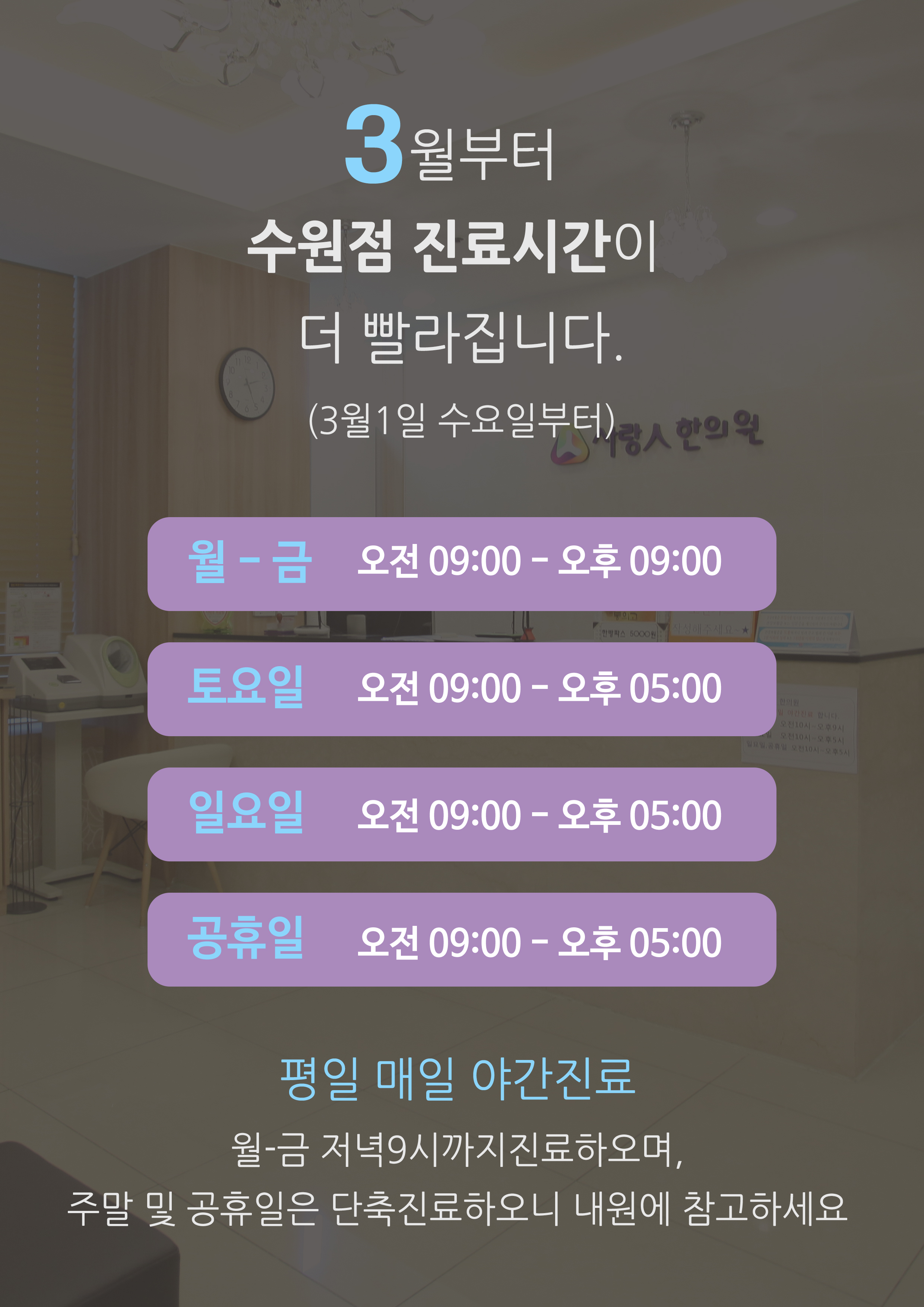 [수원점] 3월부터 진료시간이 한시간빨라집니다
