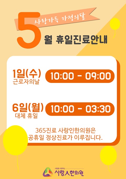5월 공휴일 진료시간안내입니다.