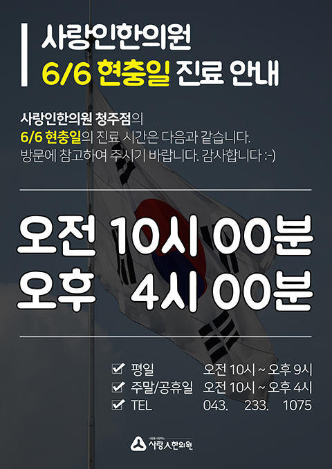 [청주점] 청주점 현충일 진료 안내