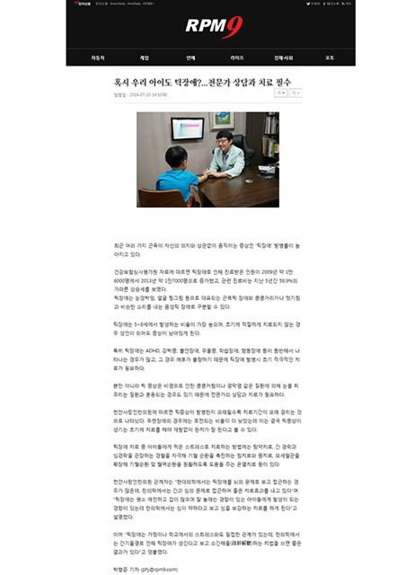 언론보도 혹시 우리 아이도 틱장애? 전문가 상담과 치료 필수