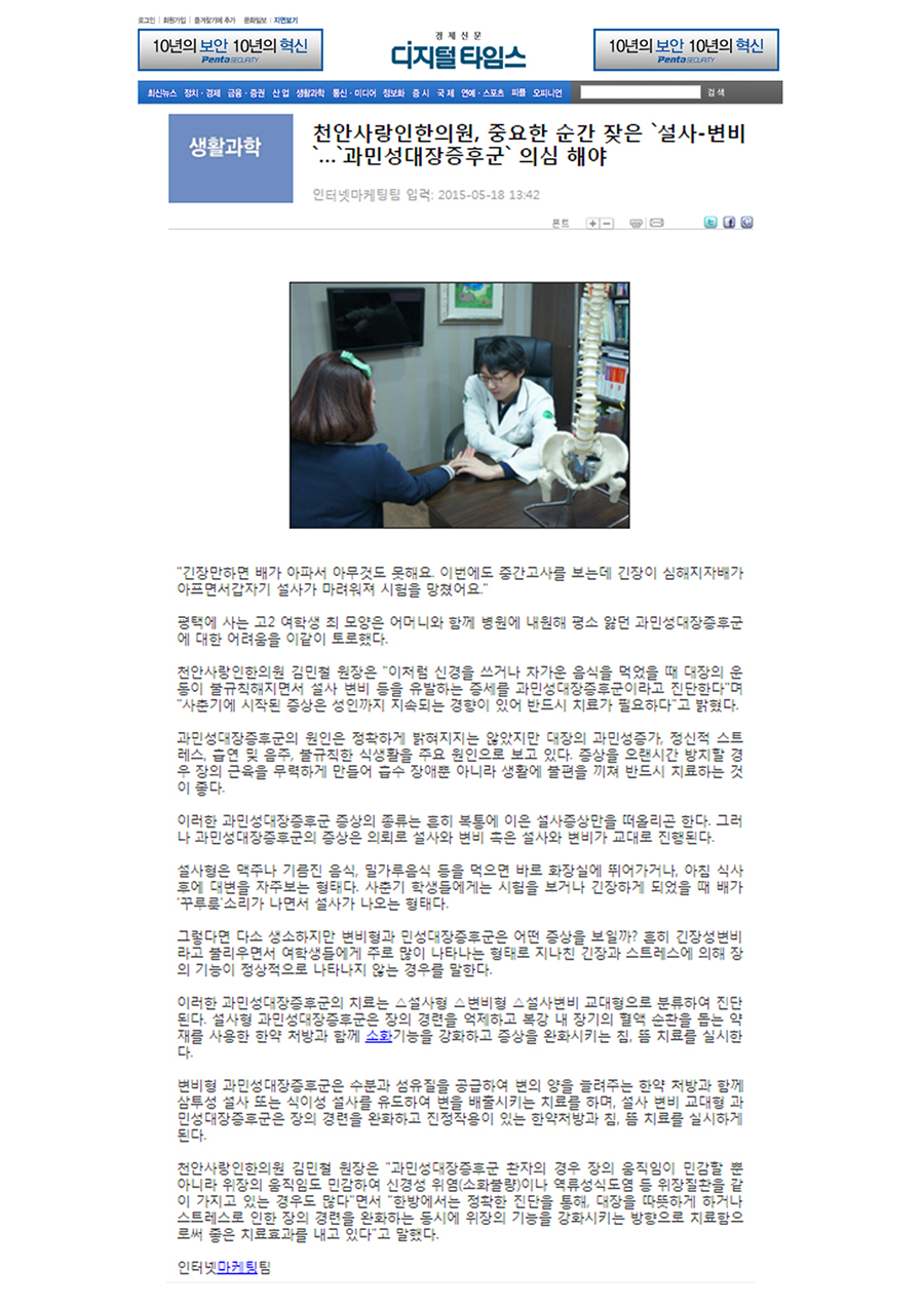 '과민성대장증후군'관련 인터뷰기사를 확인하세요